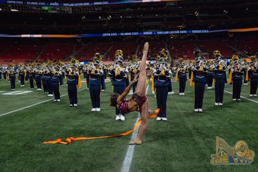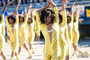 Golden Delight is a performance ensemble that is a component of the NC A&T State University Marching Band. The ladies are selected through an intense audition process. Once the squad is selected, they participate in a rigorous 2 week band camp period to prepare for the season. The performance season begins in late August and ends in early December and includes parades, half time shows, dance competitions, exhibition performances, indoor band battles, outdoor battle of the bands, pep rallies and more.