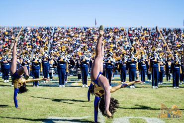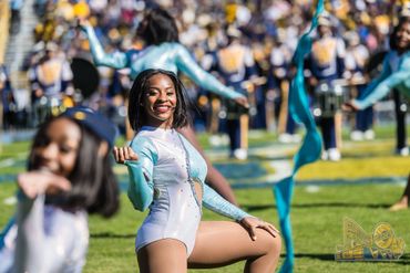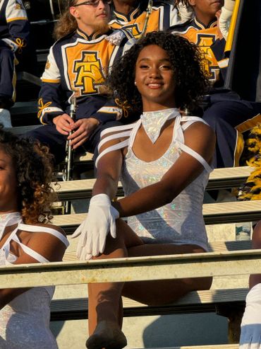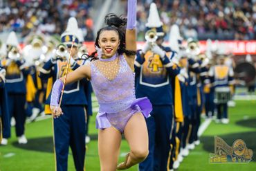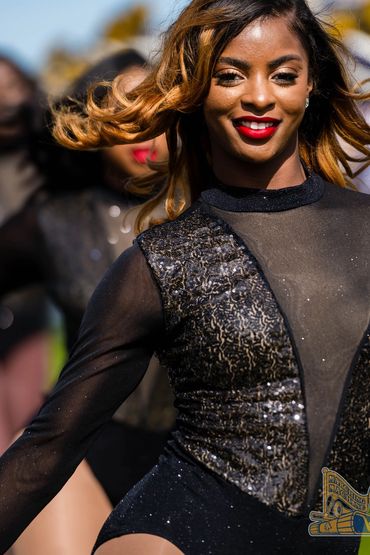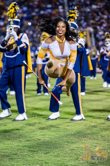 We are a special squad in the world of HBCU Bands. Our ladies are trained to be both twirlers and dancers. Typically, we have 18-22 squad members but do not conduct our auditions based on numbers. Of that number, 4-6 twirl baton and 16-18 twirl flag. All squad members serve as feature dancers. Candidates who have never twirled before are taught (clinics are a the best way!) However, every candidate must already have dance experience.